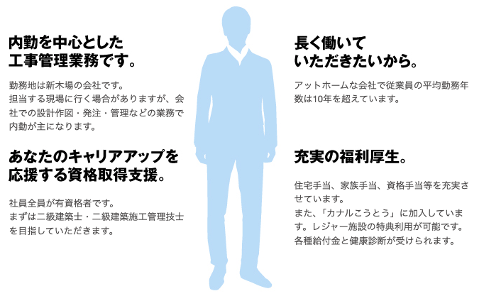 | 福利厚生 | 社会保険完備、各種手当、「カナルこうとう」加入、資格取得のための学費補助 |